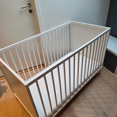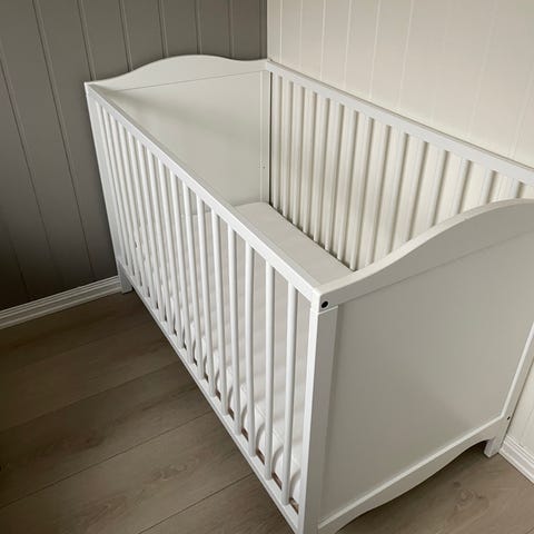 Hvit sprinkelseng fra Trold&co. I god stand, men med normale bruksmerker.