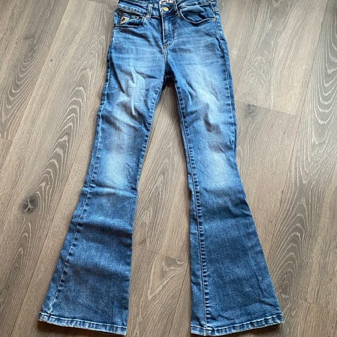 Lois melrose jeans jente, W24, L32 Buksen er i blå denim og laget av bomull. Klassisk femlommersmodell med beltehemper og glidelåsgylf med knapp. Mener dette er minste modell hos Lois, passet 12-13 år her. Pent brukt da den raskt ble for liten.