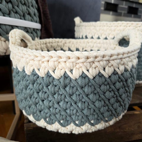Stor kurv i nydelig dus grønn farge.