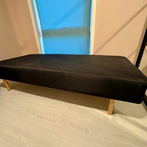 Overmadrass gies bort har hullet og trenger vask, det er forsatt ok å bruke må hentes