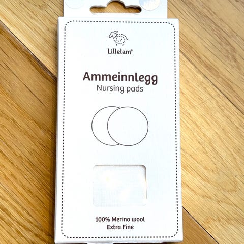 Selger uåpnet pakke med tykkere ammeinnlegg i 100 % børstet merinoull, størrelse S (12 cm i diameter).
