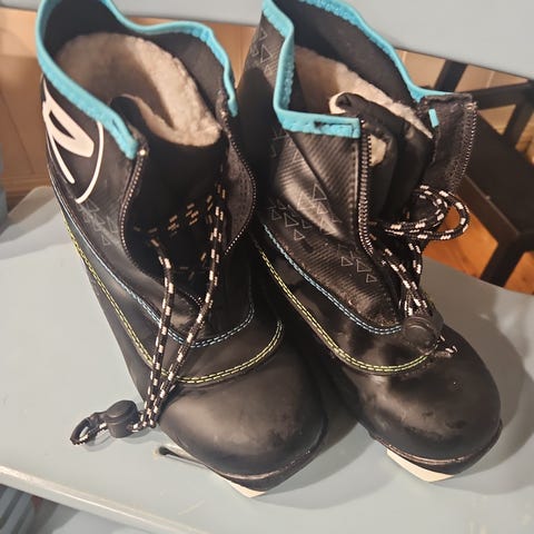 Selger et par pent brukte skisko fra Rossignol. Har strammesnor og "sokk" utenpå. Vanlig NNN-bindinger. Varme og komfortable sko.