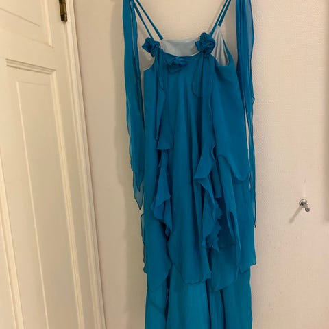 En helt spesiell kjole med flere lags skjørt i spisser. Den er i bra stand, men aner noen flekker i ytterste lag, ikke veldig synlig. Passer nok str M/Lx En kjole for oppmerksomhet. Har en « kåpejakke» som kan brukes utenpå som kan følge med for samme pris. Kan sende