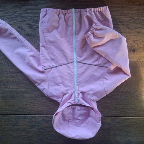 Den har gått opp bittelinn i innersømmen under den ene armen. Enkelt å fikse, men selges derfor ekstra rimelig.