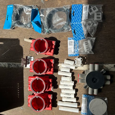 Alle er nye og ubrukt unntatt de store røde har vært skrudd på stav og tatt ned.