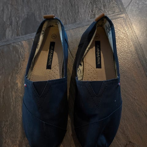 Jean Paul mokkasiner og båtsko i størrelse 41. Skoene er i blå tekstil med lyse såler og detalj bak på hælen. Modellen er lett og lav, uten lisser, og tas enkelt av og på. Passer til hverdagsbruk og fritid i milde sesonger. Egnet for deg som bruker skostørrelse 41 og ønsker et par enkle, lave sko i blå farge.