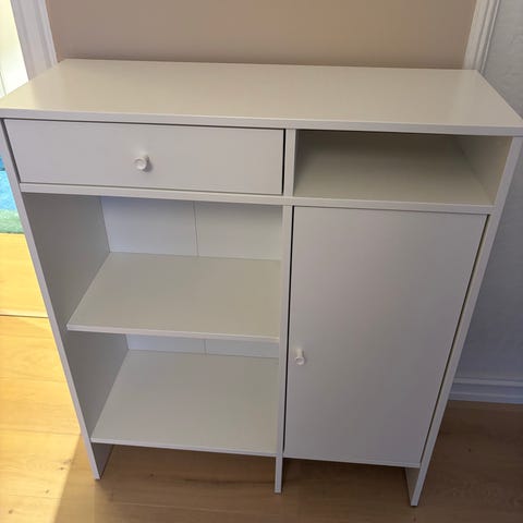 Selger et pent og stilrent skap i lys i heltre.