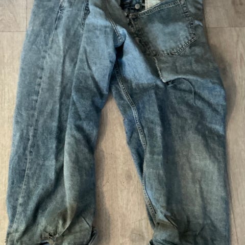 Gant jeans i str 38/30 og har blitt brukt noen måneder og revnet men de kan fortsatt lappes sammen og er gode å bruke fortsatt.