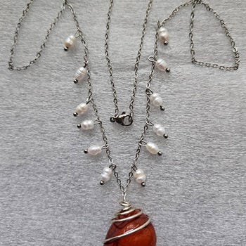 Halssmykke laget med krystallstein av ekte Peridot og krystallperler av ekte Jaspis. Kjedet er ca. 60 cm.