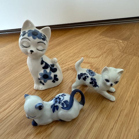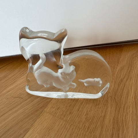 Selger en liten glassfigur med detaljert motiv av en katt – perfekt som dekorasjon på hylla, skrivebordet eller som gave til katt-elskeren.
