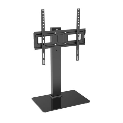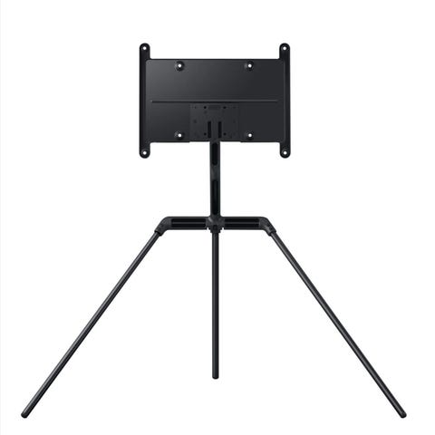 Samsung TV-stativ bordmodell i svart. Stativet har rektangulær fotplate og vertikal søyle med VESA-feste for montering av flatskjerm-TV. Egnet for plassering av TV på bord eller TV-benk der veggfeste ikke er aktuelt. Passer skjermer som støtter standard VESA-feste (se hullmønster på braketten for kompatibilitet).