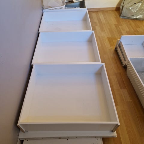 Kan følge med inventar på 1450kr til 800kr. 1x garderobestang 100cm, 3x grå nettingkurver 100cm og 2x hvite nettingkurver 50cm
