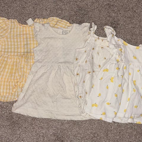 Tre søte kjoler i bomull. Pent brukt og fra røyk- og dyrefritt hjem. Selges samlet for kr 100,-