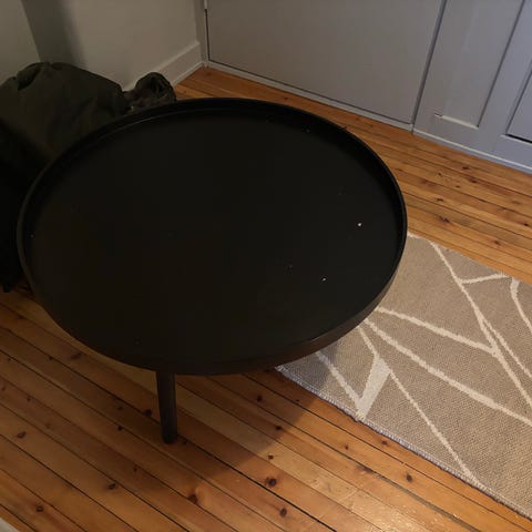 Sofabord modell Lejre fra Jysk. Gis bort da det mangler en skrue og ene benet er litt ustabilt. Platen har også noen bruksmerker og en større sprekk fra ene skruen - se bilder.
