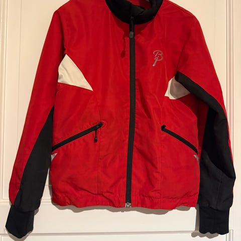 Bjørn Dæhlie lagrennsdress for barn i størrelse 128. Sett med jakke og bukse. Jakken er rød med mørke detaljer og hel glidelås foran, samt ståkrage. Buksen er marineblå med strikk nederst i bena.