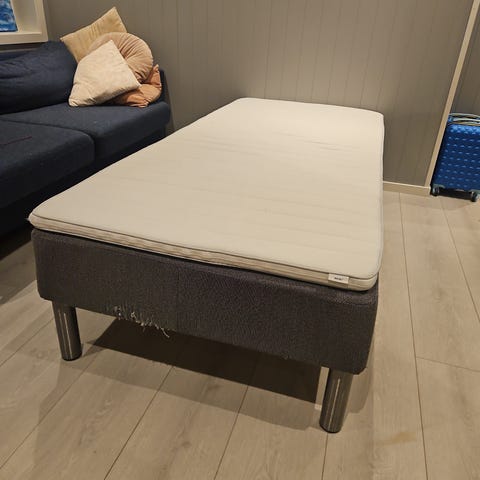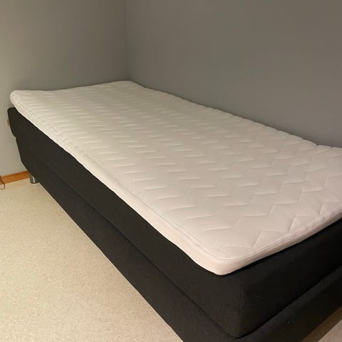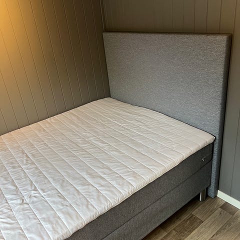 Rammeseng med overmadrass som har blitt brukt som gjesteseng. Har alltid brukt beskyttelse-trekk (dette følger ikke med). Senga kostet ny 18.000 kr.
