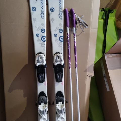 Alpinski med staver og Nordica alpinstøvler.