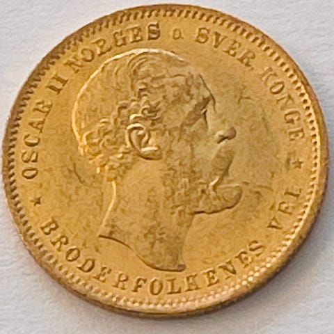 Norge 20 kroner gullmynt 1875 Oscar II kv 001