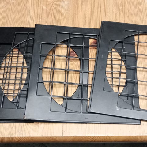 Sett med 3 stk retro 70-talls(?) stativ/holdere for vinylplater selges samlet kr 700,-.