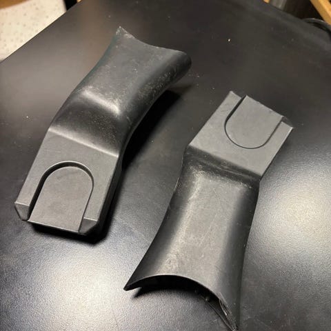 Adapter for å sette 2022/2023 Priam liggedeler på eldre Priam understell. Passer også bilstoler med standard maxi-cosi adapter (blant annet Besafe Beyond, Cybex Cloud, Maxi-Cosi Pebble +++)