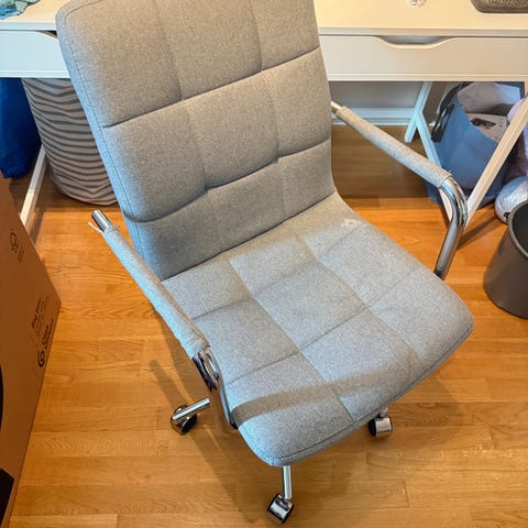 Kontorstol frå Ikea. Stolen har høg rygg for bedre sittekomfort. Understell med hjul og justerbar høgde. Super som arbeidsstol på hjemmekontor.