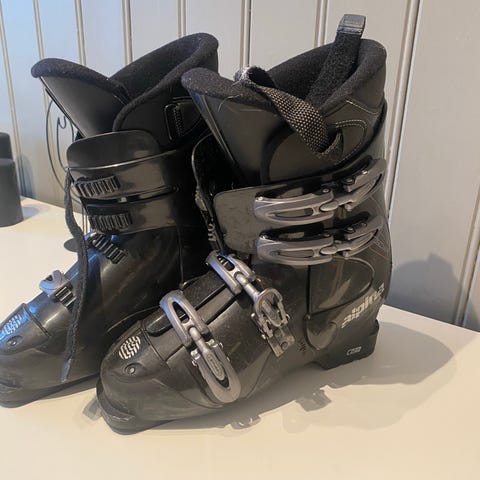 Alpina Discovery alpinstøvler i svart farge. Ski støvler har fire justerbare spenner i metall og borrelås øverst for bedre tilpasning rundt leggen. Ytterskall i plast med forsterket tåparti og hæl. Passer til bruk i alpinbakke med standard alpinski-bindinger.