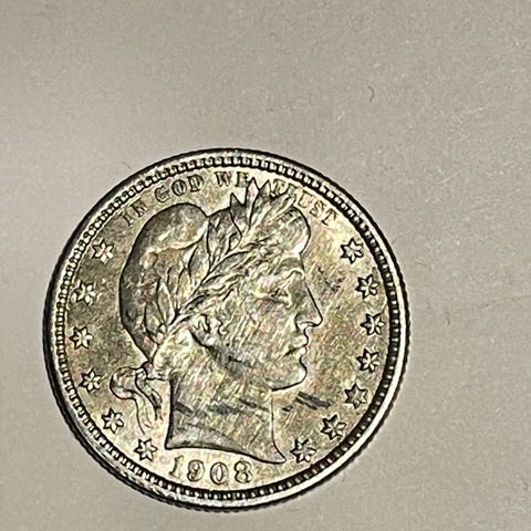 USA Barber Half Dollar mynt 1908 D sølv
