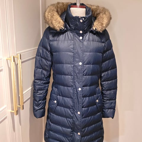 Pen vinterjakke med litt innsving, hette med ‘pels’.