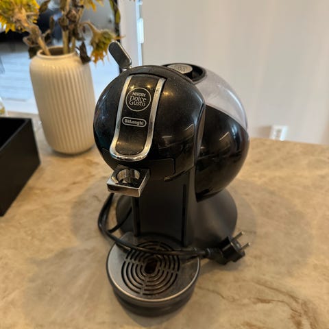 Pent brukt kaffekapselmaskin fra Dolce Gusto med en full pakke med kaffekapsler selges billig grunnet flytting.