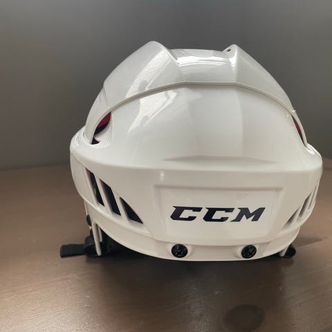 CCM Fitlite 50 ishockeyhjelm i hvit farge. Hjelmen har ventilasjonsåpninger og justeringsmuligheter bak for tilpasning til hodestørrelse. Modellen er godkjent for ishockeybruk, med merking for CE og HECC. Passer til bruk på ishockeybane og annen isaktivitet der hjelm er påkrevd. Str. M
