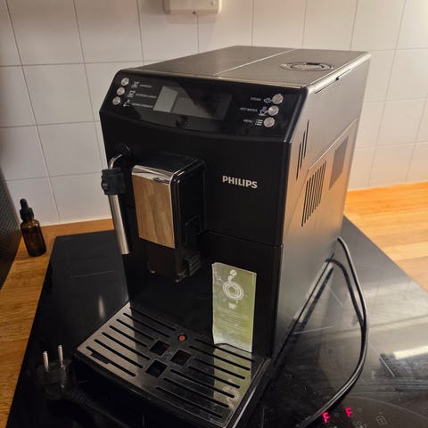 Selger en phillips 2200 kaffemaskin, denne fungerer utmerket men mangler stanga til melkeskummer. Men den får du kjøpt rimelig på nett! Koster nå 2990 på elkjøp. Jeg selger den for 1600.
