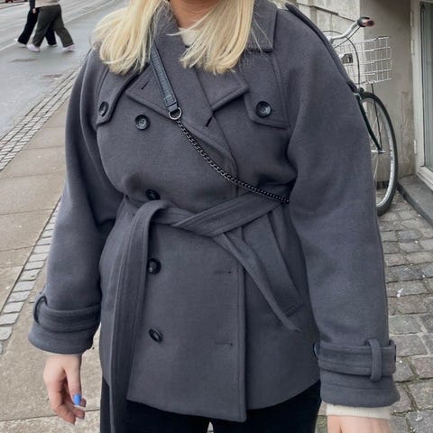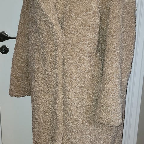 Bik Bok kåpe i fuskepels for dame i størrelse XL. Kåpen er grønn med myk, strukturert overflate og har rosa fôr på innsiden. Modellen har krage og lommer i sidene. Passer som yttertøy i overgangssesonger eller mildere vinterdager.