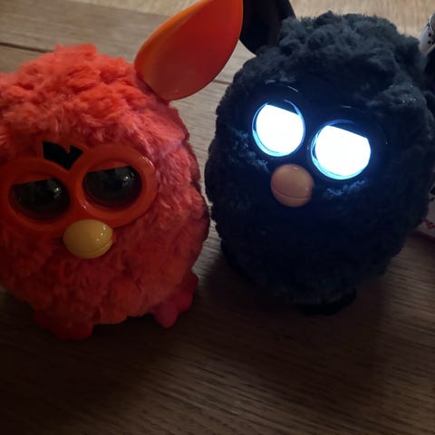Furby er et elektronisk kosedyr som vanligvis reagerer på lyd og berøring, beveger øyne og ører og lager lyder. Passer som leke eller samleobjekt. Selges som vist på bildene. Testet og den funker som den skal.