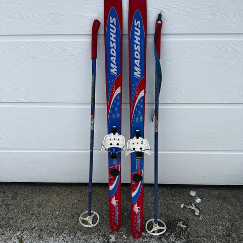 Madshus smørefri ski 140 cm og swix staver 115 cm