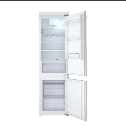 Skapet har innebygget betjeningspanel med lysindikatorer for innstillinger av temperatur. Det er beregnet for integrering i kjøkkeninnredning, med separat dør for kjøl og frys.