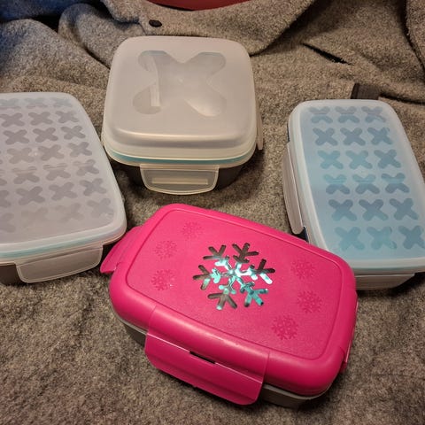 Sett med flere avfallsbøtter i ulike størrelser, egnet for sortering av avfall på kjøkken eller vaskerom. Bøttene er laget i plast og har rette kanter som gjør dem enkle å plassere i skuffer, skap eller stativ til avfallssortering.