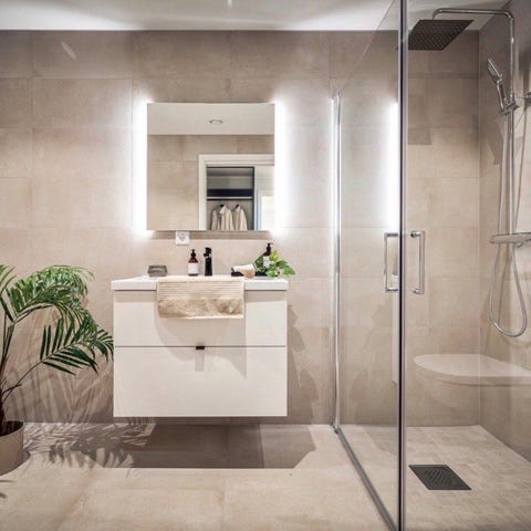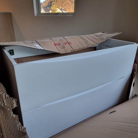Hvitt baderomsmøbel fra Foss bad.