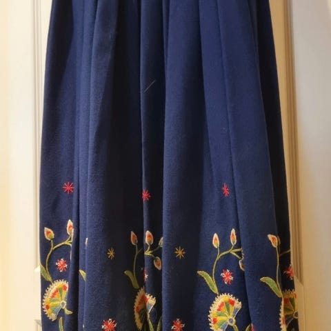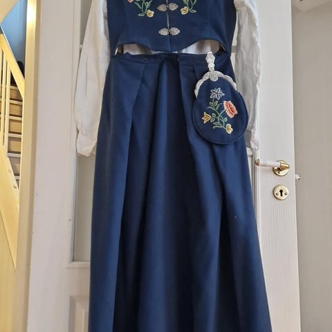 Vestoppland-bunad til salgs. Inkludert i prisen er selve bunaden, bunadsskjorte, cape, lue, underskjørt og komplette søljer.