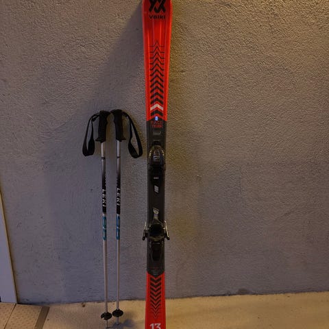 Selger pakke med alpinski Völkl SC Racing P60, lengde 135cm og alpinstøvler Dalbello Team størrelse ca. 37 (sålen måler 25.0cm - se bilde).