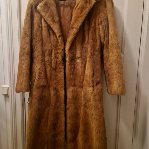Pelsen lukkes med to hemper i front. Den er myk, hel og pen, selv om den er vintage.