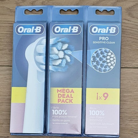 Pga overgang til annen tannbørste så selges 5 uåpnede pakker x 4 børster pr pakke.
