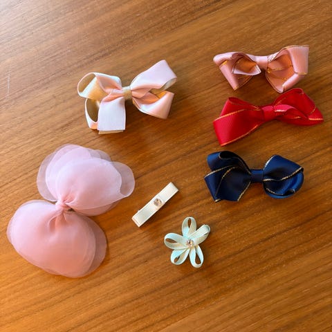 Hårklemmer og hårstrikk som er håndlaget av meg. Selges i 3 pk med 3 forskjellige størrelser.