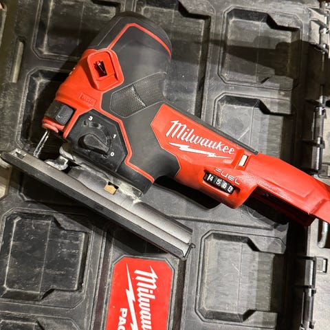 Milwaukee M18 CSX bajonettsag 18V i rød og svart utførelse. Batteridrevet sag i M18-serien, egnet for grovkapping og rivningsarbeid i tre, metall og andre materialer avhengig av valgt blad. Ergonomisk håndtak og gummiert grep for bedre kontroll. Leveres uten spesifisert batteri og lader dersom ikke annet er oppgitt i annonsen.