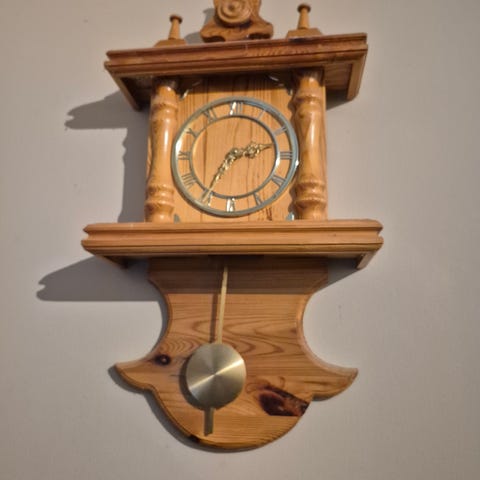 Analog veggtelefon med dreieskive i treutførelse. Telefonen har klassisk dreieskive med tall og bokstaver, samt håndsett med trehåndtak og plastdetaljer. Kabinettet er laget i tre og monteres på vegg. Under telefonen er det en liten hylle og et oppbevaringsrom som kan vippes ut. Enheten kobles til med kabel. Egner seg som fasttelefon eller som dekorativ innredningsdetalj der man ønsker et tradisjonelt uttrykk.