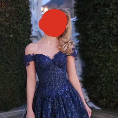 Tina Ritzi kjole til spesiell anledning i størrelse XS. Kjolen er beige og laget i tyll. Overdelen har dekorative blonde- og applikasjonsdetaljer, mens skjørtet er langt og lagdelt i tyll. Ryggpartiet har snøring som gjør det mulig å justere passformen. Passer perfekt til ball. Er sydd opp cirka 5 cm, slik at det passer perfekt til høyden sirka 165 cm. Kjolen følger med kjolepose verdt 200kr. Har blitt sydd opp noe som gjør til at kjolen blir 4900kr.