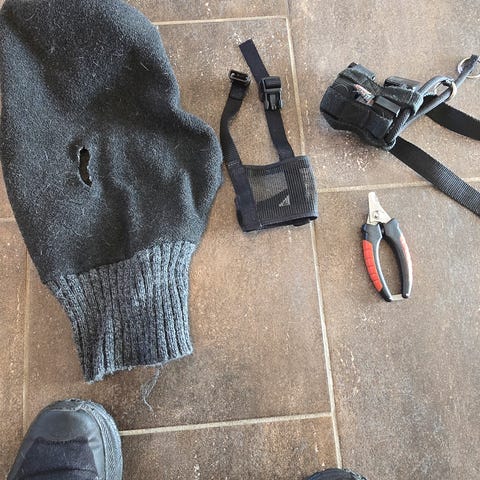 Det er kun prøvd på. Litt usikker på størrelsen, men ble akuratt litt for lite til en schæfer.