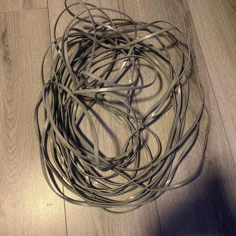 Nettverkskabel Ethernet med RJ45-kontakter i begge ender. Farge hvit. Egnet for kablet nettverkstilkobling mellom for eksempel ruter, switch, PC eller annet nettverksutstyr. Kabelen leveres som én sammenrullet lengde, klar til bruk der det er behov for fast eller midlertidig nettverksforbindelse. Ca 25 mieter