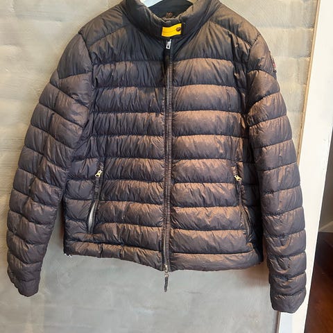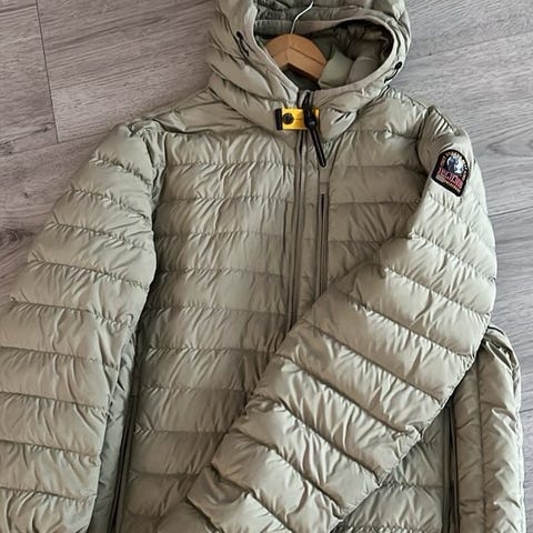 Parajumpers dunjakke for herre i størrelse XL. Jakken er beige utvendig med vatterte dunkanaler og mørkt fôr på innsiden. Lettvektskonstruksjon med glidelås i front. Flere inner- og ytterlommer samt karakteristisk Parajumpers-logo på ermet. Egnet som lett og isolerende ytterjakke i kjøligere vær.