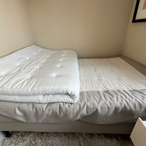 Kjøpt i april 2023. Dyr- og røykefritt hjem. Brukt med madrasstrekk/beskytter.