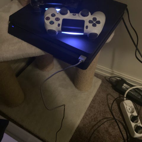 Sony Playstation 4 Slim spillkonsoll hvit med kamuflasje-kontroller